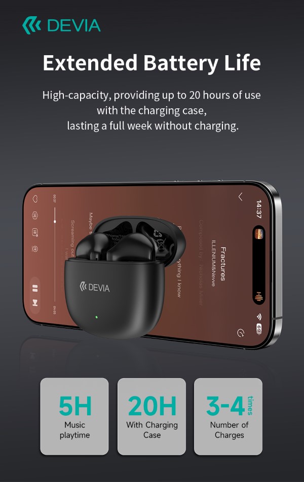 Lunga durata: fino a 20 ore di utilizzo con la custodia di ricarica, equivalenti a una settimana di uso regolare.