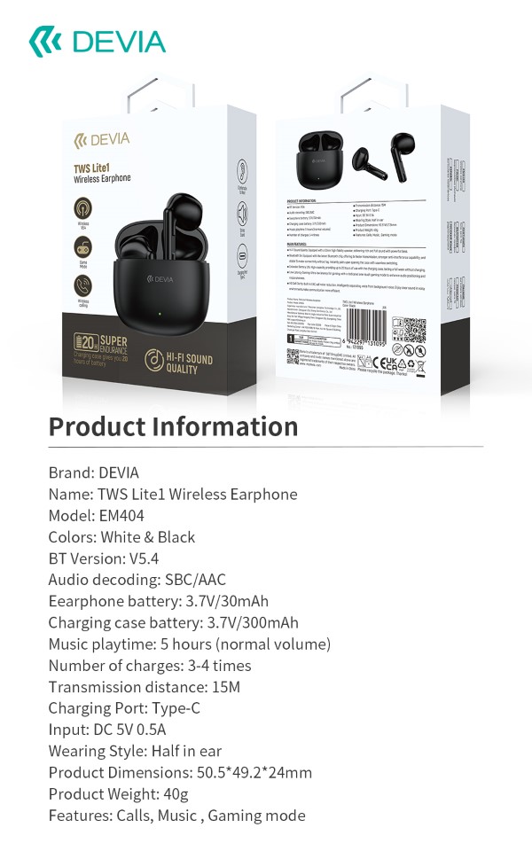 Auricolari TWS EM404 Lite1 Bluetooth 5.4 Neri