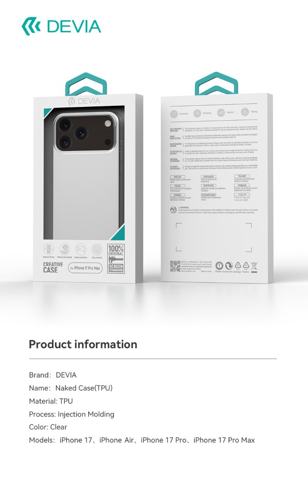 La DEVIA Naked Case (TPU) è la scelta ideale per chi desidera proteggere il proprio iPhone mantenendo un look minimalista e pulito.