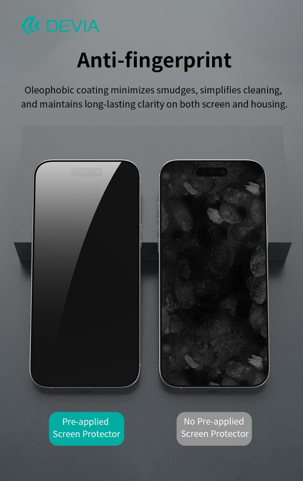 Rivestimento oleofobico anti-impronta: previene le macchie, facilita la pulizia e mantiene la trasparenza a lungo.