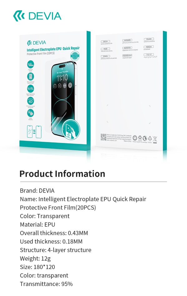Nome: Pellicola Protettiva Frontale Intelligente Autoriparante EPU con Rivestimento Elettroplaccato (20 pezzi)
