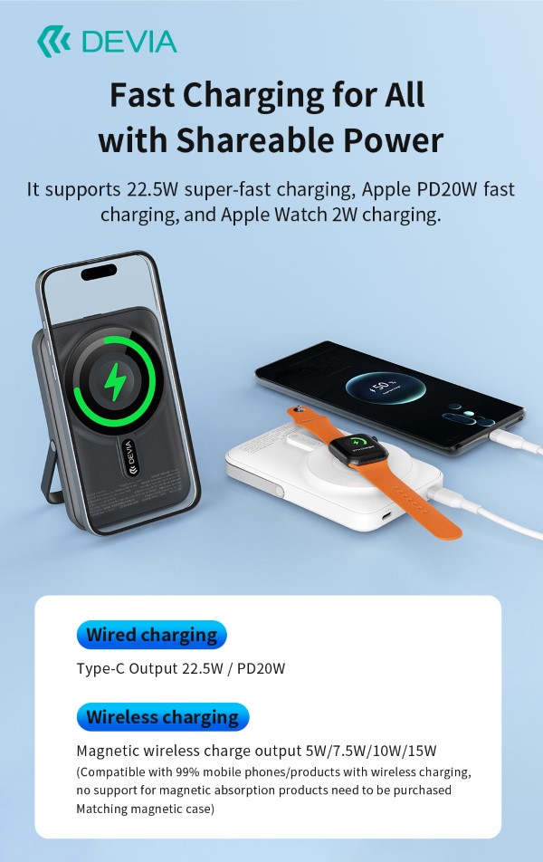 DEVIA Extreme Speed Series 22.5W Fast Charging Magnetic Power Bank with Bracket (10000mAh)
